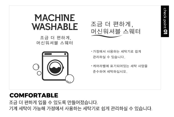 그냥 세탁기에 돌려도 되는 니트라서 맨투맨처럼 편하게 착용하셔도 좋을 제품입니다.