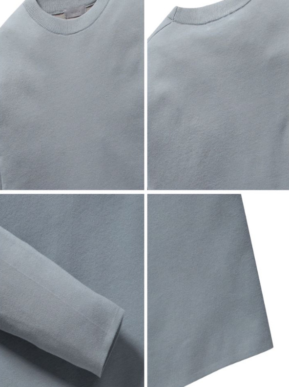 핏도 세미오버핏으로 니트보다 라운드티 느낌도 듭니다. 봄가을에 자켓이너로 활용하기 좋아 보입니다.