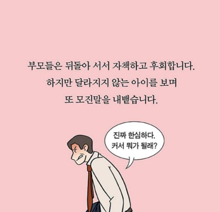 하지만 달라지지 않는 아이를 보며 또 모진말을 내뱉고 맙니다.