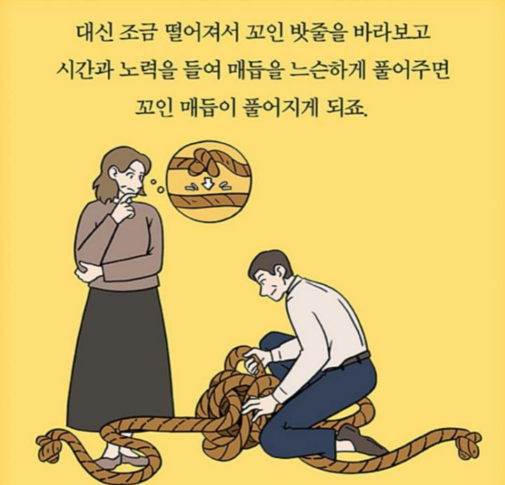 시간과 노력을 들여 꼬인 매듭을 느슨하게 풀어주면 결국