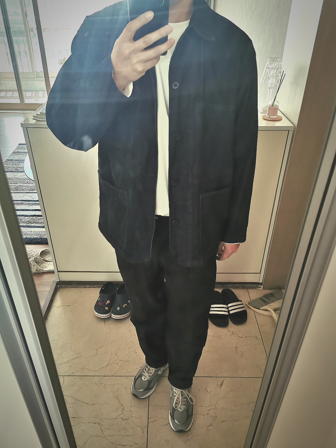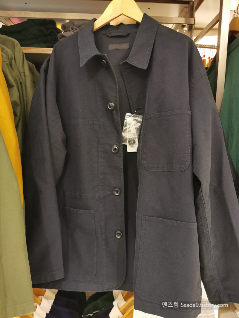 몰스킨 원단이라서 시간이 지남에 따라 갱년변화가 느껴질지는 모르겠지만 일단은 첫느낌은 너무 밋밋한 느낌이였습니다. 네이비 컬러는 워싱감이 안느껴져도 진한 컬러라 그런지 톡톡한 원단감에 호불호 없이 여기저기 매칭하기 딱 좋은 자켓느낌입니다. 작년에 데님버전 구입했는데 네이비는 세일하면 구매하고 싶네요.