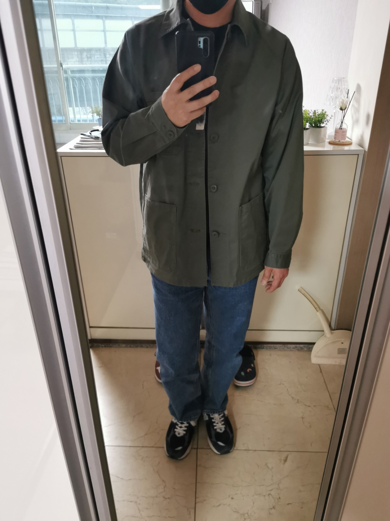 아래는 주말에 착용해본 23FW 유틸리티 자켓 올리브 컬러입니다. 180/79 이고 라지 착용했습니다. 딱맞는 느낌입니다. 핏감은 22FW 버전보다 미세하게 작게 느껴집니다. 그런데 이번 버전은 딱히 매력이 없게 느껴진 가장 큰부분이 워싱감이 거의 없다는 겁니다. 정가는 23SS 버전과 마찬가지로 79,900원입니다.