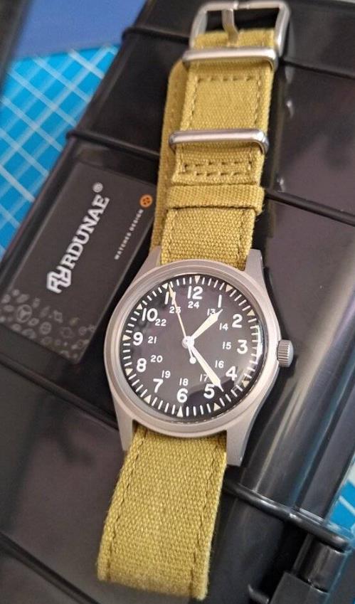 베트남전 밀스펙을 복각해 만든 필드 워치로, 제작사는 RDUNAE(알덴이)로 현재 알리익스프레스에서 판매중입니다. 인기가 좋아서 금새 품절이 되고 있습니다.